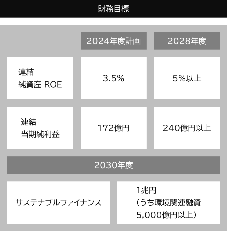 中期経営計画では、財務目標を「ROE」「当期純利益」の2つと定めました。