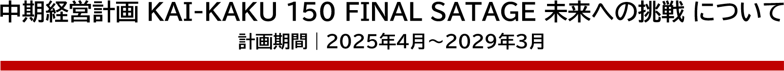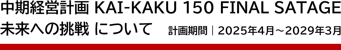 中期経営計画 KAI-KAKU 150 FINAL SATAGE 未来への挑戦は、「経済価値」と「社会価値」双方を創出することで、地域活性化や企業価値向上をめざすことをコンセプトとしています。