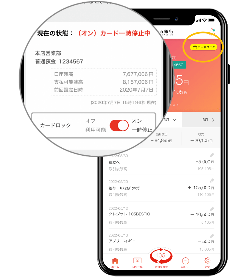 百五銀行のキャッシュカードをお持ちのお客さまは紙の通帳からアプリに切替いただくことで「いますぐ」ご利用が可能です。