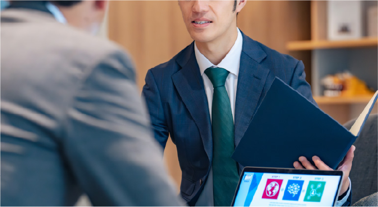 地方自治体や公的機関を取引先とし、公共分野に関わる金融サービスを担う部署です。自治体の資金運用・資金調達支援、指定金融機関業務、公共事業にともなう事務取扱などを行います。また、地域政策や行政動向を踏まえた提案を通じて、自治体運営の円滑化と地域社会の発展を支えています。